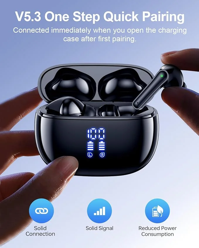 - Upgraded Bluetooth 5.3 with Ultra-Low Latency (0.02s) Wireless Ear Buds: The T12 Wireless headphones adds Bluetooth flash pairing technology to the latest version, delivering 30% lower power consumption, 50% stronger signal stability, and 25% better interference resistance than previous versions. With an ultra-responsive 0.02-second latency, enjoy flawless audio-video sync for movies, gaming, and music—immersive entertainment without a hint of delay.